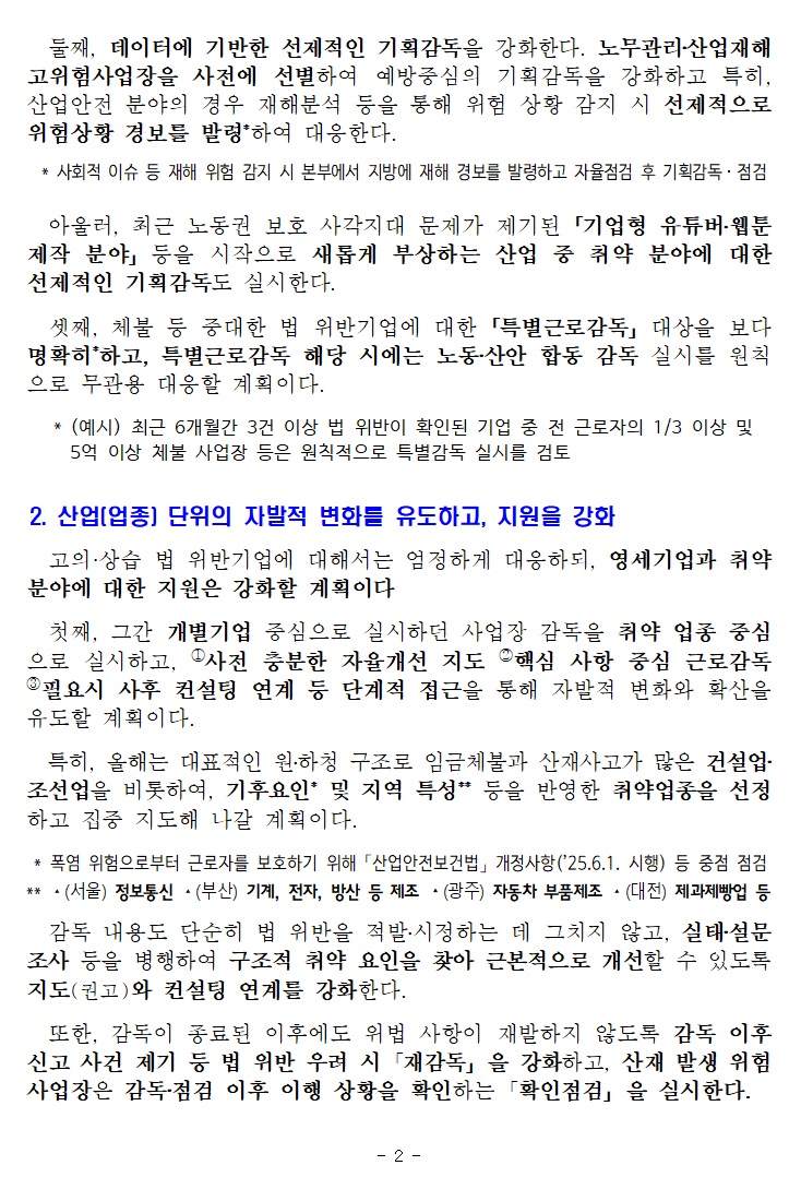 2025년 고용노동부 사업장 감독계획 발표